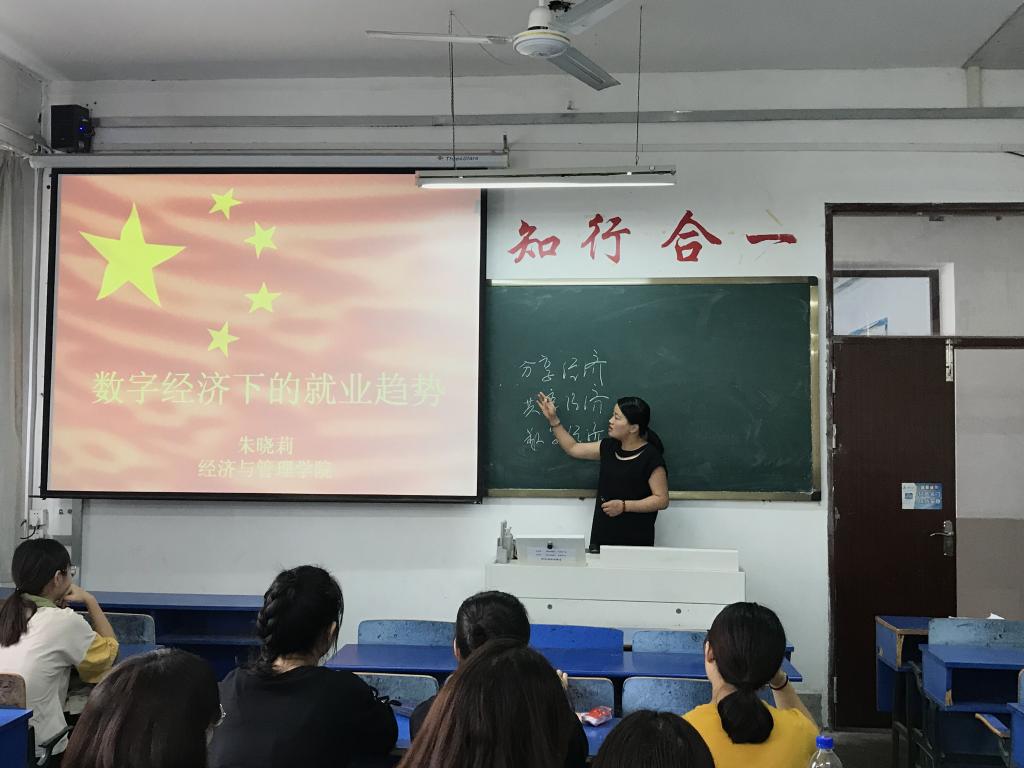 2019年9月23日上午,“行知讲堂”系列学术讲座在三孝口校区308教室举行。本次讲座由国产清纯白嫩初高生害羞朱晓莉老师主讲,题目是“数字经济下的就业趋势”,来自2018级人力资源管理专业的学生聆听了讲座。