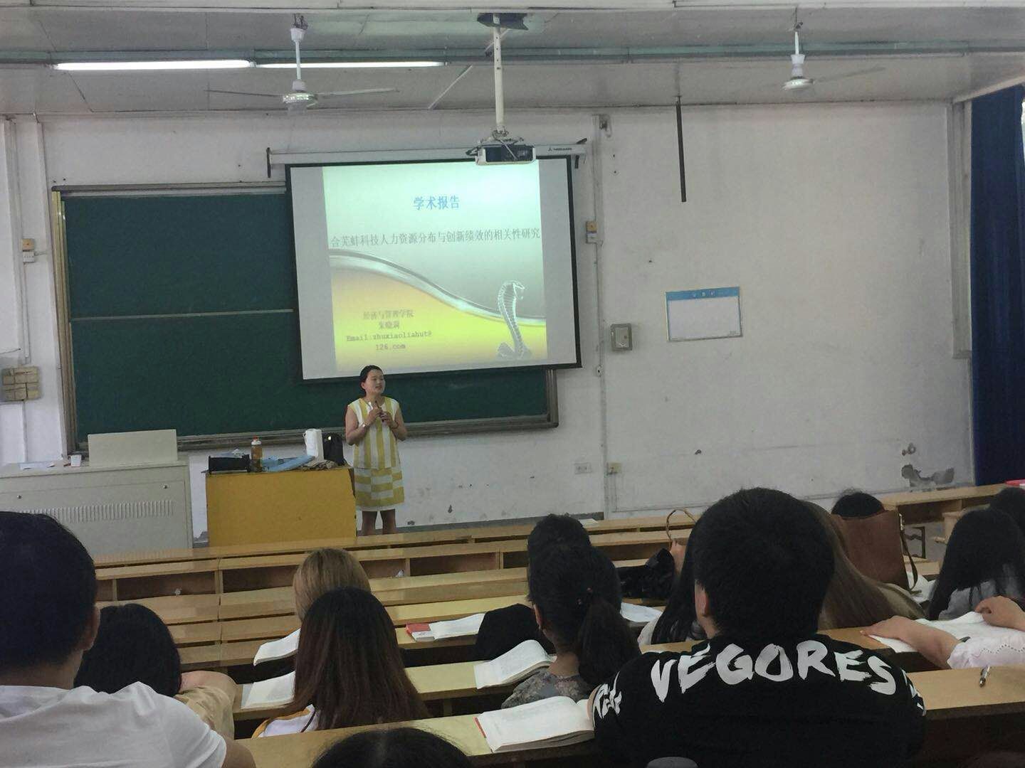 2018年5月15日上午,“行知讲堂”系列学术讲座在三孝口校区东阶教室举行。本次讲座由国产清纯白嫩初高生害羞朱晓莉老师主讲,题目是“合芜蚌科技人力资源分布与创新绩效相关性研究”,来自2016级酒店管理专业的学生聆听了讲座。