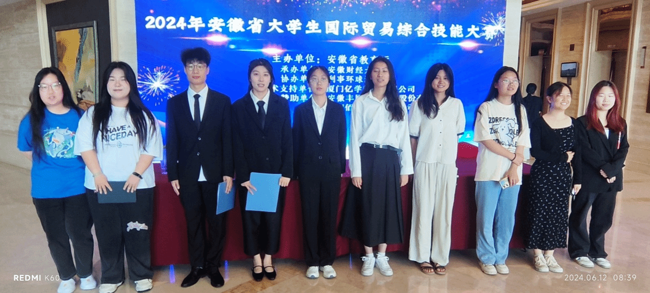 近日,由安徽省教育厅主办、安徽财经大学承办的“2024年安徽省大学生国际贸易综合技能大赛”顺利落下帷幕。省内外多所高校入围省赛,经过决赛激烈角逐,我院学子最终取得一等奖3项,二等奖2项,三等奖6项的优异成绩。