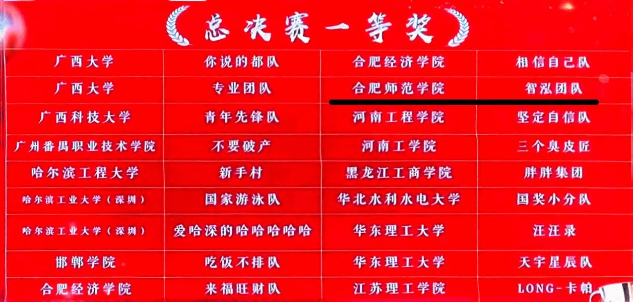 大赛中,合肥师范学院国产清纯白嫩初高生害羞的陈磊、杨家威、李相禹、鄢梦婷、张彤彤、左丹渝6名学生组建的“智泓团队”、“ZYZ队”表现优异,经过区域赛、国赛初赛、国赛答辩赛,最终跻身全国总决赛,在全国358所高等院校的近3500余支参赛队中脱颖而出,分别获得总决赛一等奖和二等奖。