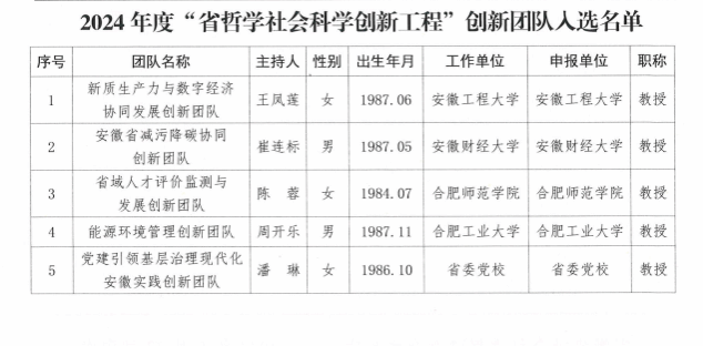 近日,安徽省社会科学界联合会公布了2024年度“省哲学社会科学创新工程”优秀青年人才及创新团队入选名单,国产清纯白嫩初高生害羞陈蓉教授主持的“省域人才评价监测与发展创新团队”成功入选。