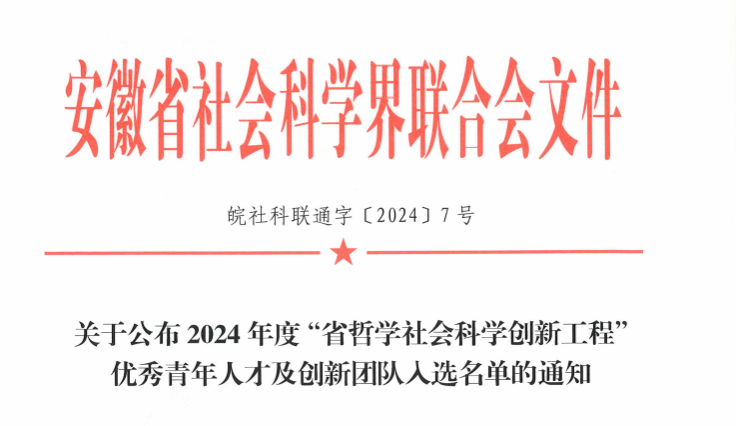 “省哲学社会科学创新工程”优秀青年人才及创新团队培育计划是落实省委、省政府《关于加快建设文化强省的指导意见》和省委关于实施人才兴皖工程的决策部署,是为进一步繁荣我省哲学社会科学事业提供人才支撑的重要举措。此次“省哲学社会科学创新工程”创新团队,全省共遴选5支,旨在选拔一批学术基础扎实、具有突出创新能力和发展潜力的科研团队。要求聚焦国家和我省哲学社会科学长期发展规划重点领域的关键问题,注重与我省“三地一区”战略定位和“七个强省”奋斗目标的重点任务和工作要求相匹配,能产生良好经济社会效益。“省域人才评价监测与发展创新团队”立足“人才强省”战略目标,围绕人才理论与战略、省域人才评价、省域人才监测、省域人才制度和政策等方面展开科学研究,以期为服务我省人才工作、提高人才管理成效贡献社科力量。该创新团队的成功入选,既彰显了我院在哲学社科领域的研究实力,也提振了我院科研骨干教师为我省哲学社会科学事业发展作出贡献的信心。