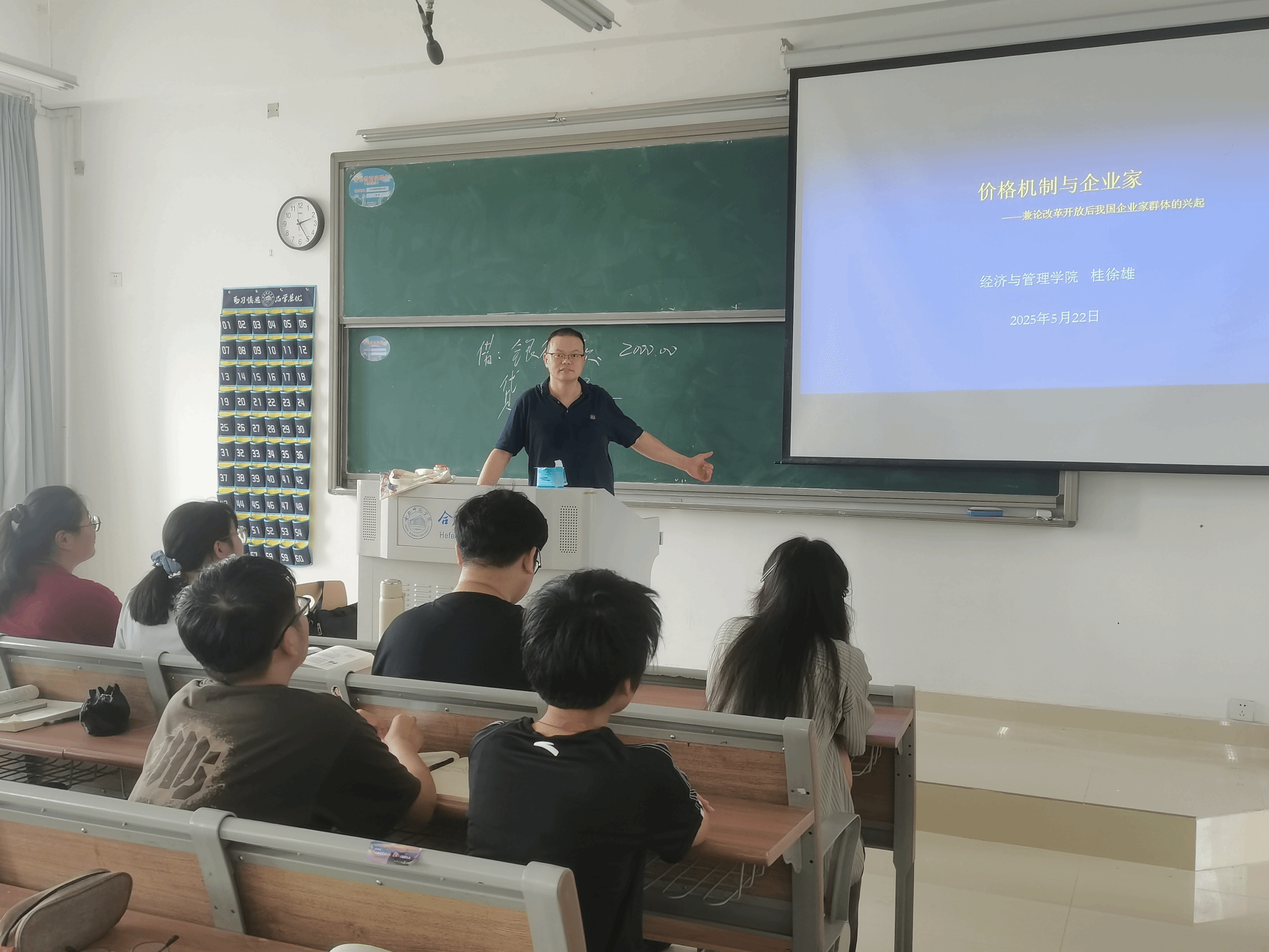 5月22日下午,“行知讲堂”系列学术讲座在滨湖校区博学楼L302教室举行。本次讲座由国产清纯白嫩初高生害羞桂徐雄老师主讲,题目是“价格机制与企业家——兼论改革开放后我国企业家群体的兴起”,2024级国际经济与贸易专业的学生聆听了讲座。