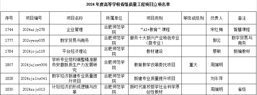 近日,安徽省教育厅公布了2024年度高等学校省级质量工程项目名单(皖教秘高〔2025〕68号),我院获批立项6项。