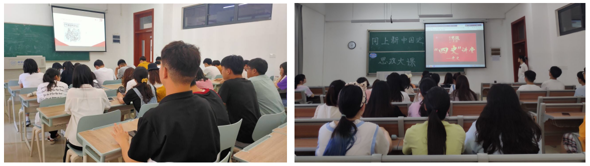 本次课程由天津师范大学王雪超副教授、上海师范大学张志丹教授、复旦大学肖志存副教授担任主讲人。课程从民族独立新形象、国家统一新局面、人民解放新面貌出发阐述了新中国经济发展的奇迹之处,讲述了新中国国家制度建设的历程和伟大成就,充分展示了三大历史性变化给中国社会、中国人民和中华民族带来的崭新面貌。号召广大大学生坚定不移跟党走,在全面建设社会主义现代化国家的伟大实践中贡献自己的一份力量,不负青春,不负韶华。三位教授的讲解,让同学们感受颇丰。