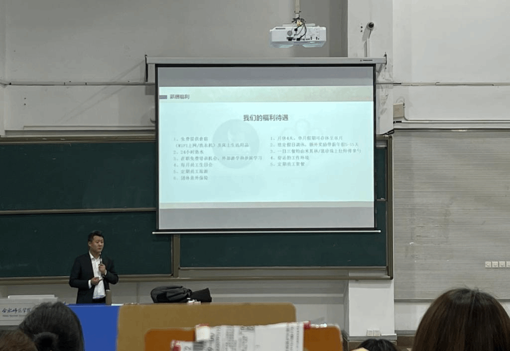 宣讲过程中,两个企业分别从公司概况、企业文化、企业员工培养模式、企业目前的发展状况及发展前景与同学们作了详尽的分享,并面向在校同学进行现场面试招聘。