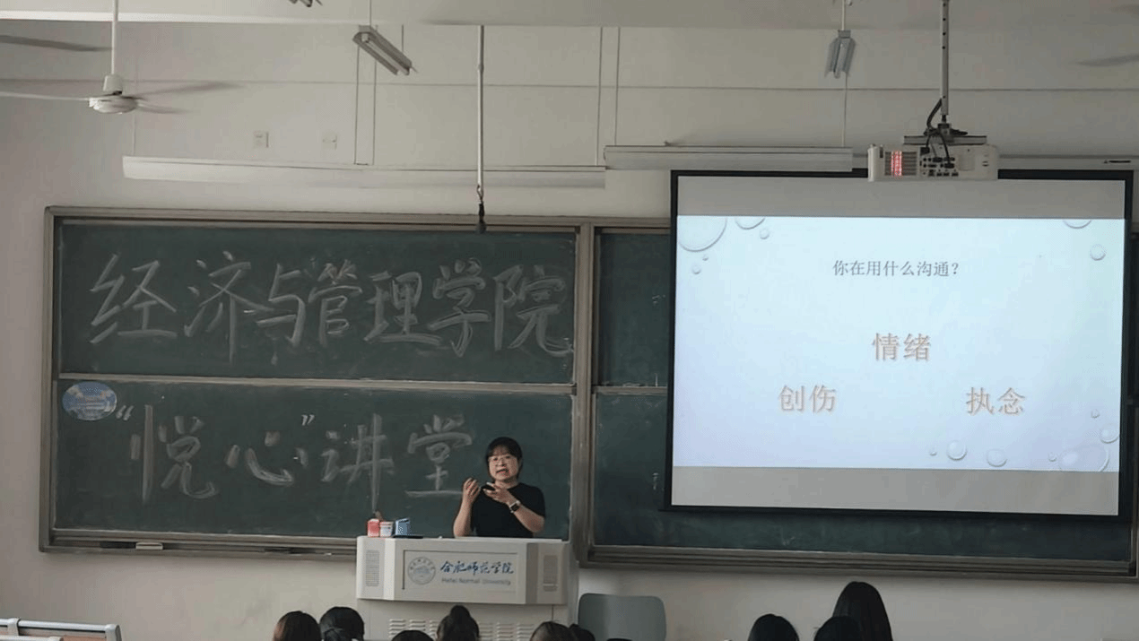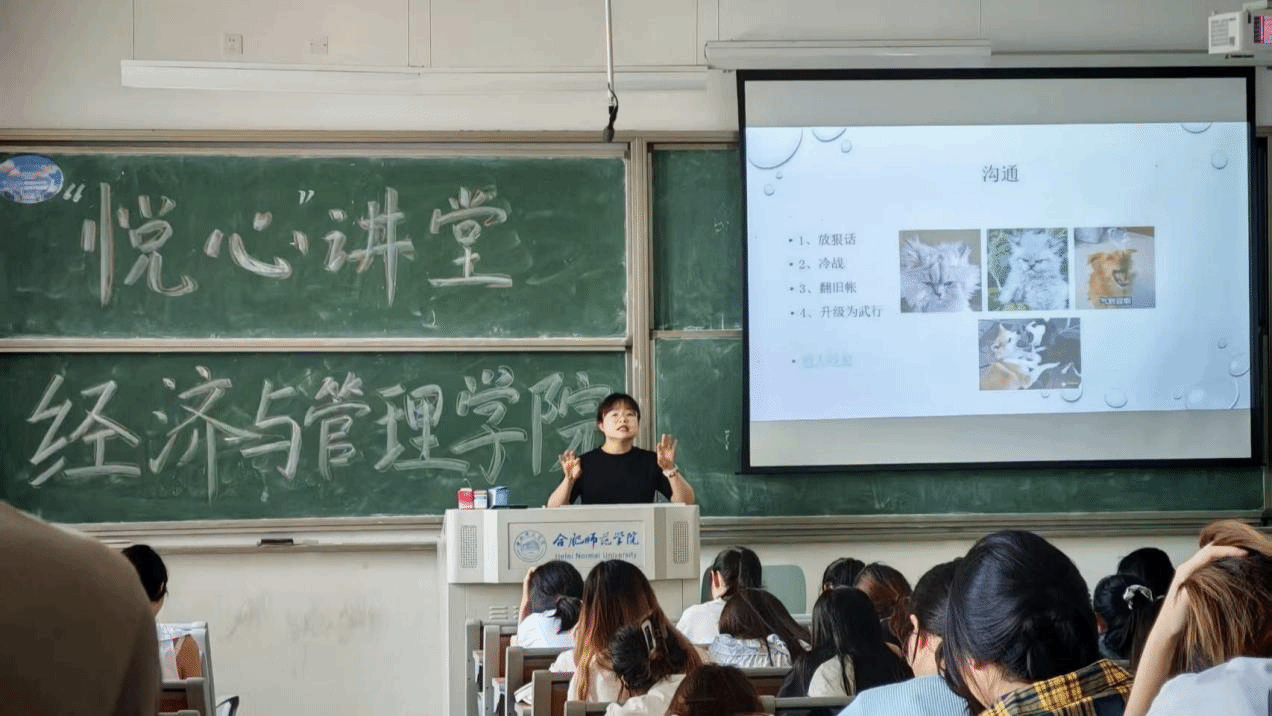 随后,吴姗姗老师将话题从爱情延伸到亲情、友情及宿舍关系,围绕“你在用什么沟通”展开探讨。结合“冷战”“翻旧账”“放狠话”等典型冲突场景,她分析了情绪化沟通带来的负面影响。吴老师表示,不少学生在矛盾中秉持“必须被理解”“必须公平对待”等极端化思维,致使关系僵化。针对宿舍矛盾,她特别说明:“导员调解并非为了判定输赢,而是引导双方正视问题。主动道歉是成熟处理关系的表现,并非示弱。”