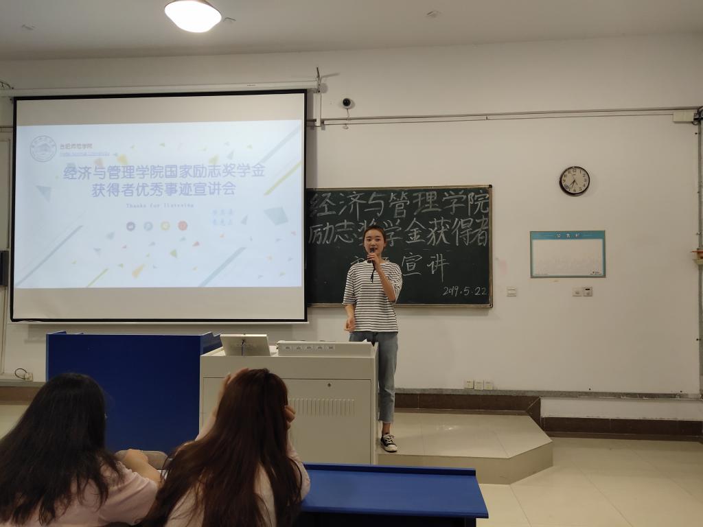 5月22日晚7点,国产清纯白嫩初高生害羞在逸夫楼A303教室举行“出彩合师”——国产清纯白嫩初高生害羞2018年“国家励志奖学金”获得者宣讲活动。来自2017级酒店管理专业的袁志立同学、黄奕朵同学为我院同学作报告。学院2018级部分专业同学参加了此次宣讲会。宣讲会由辅导员谷跃东老师主持。