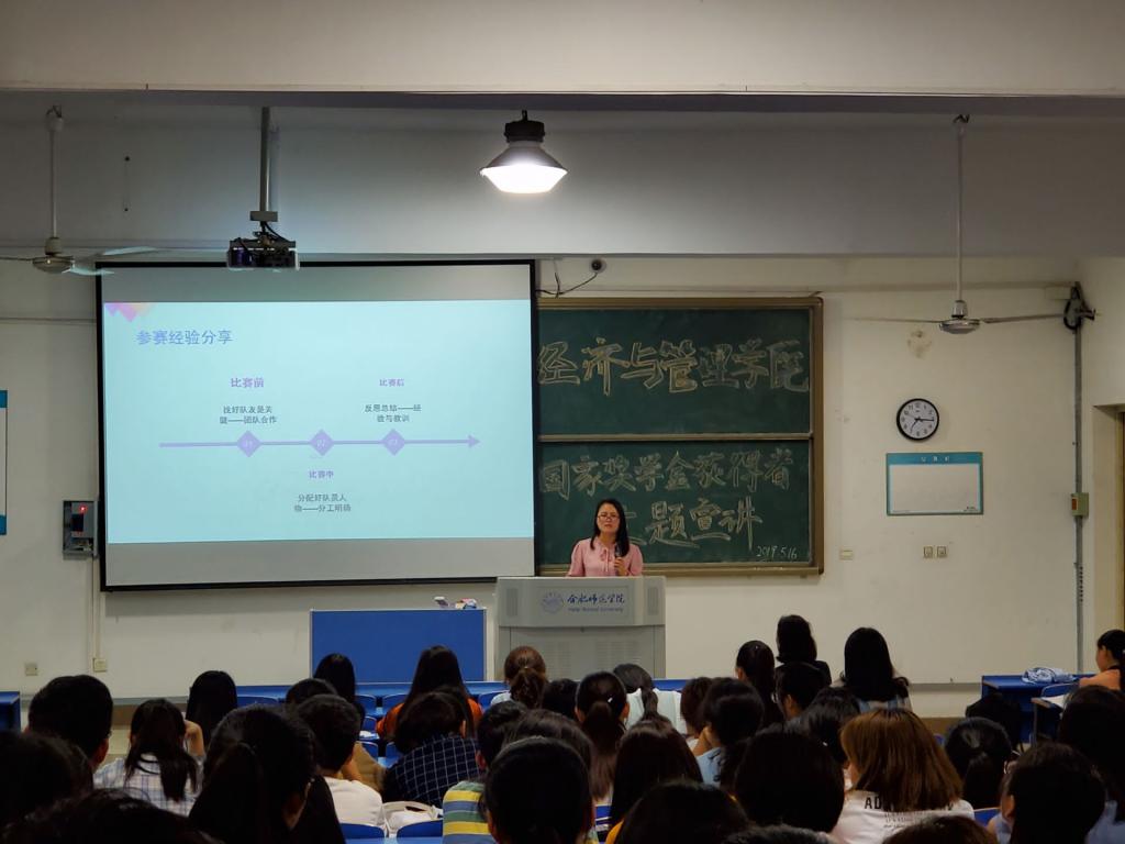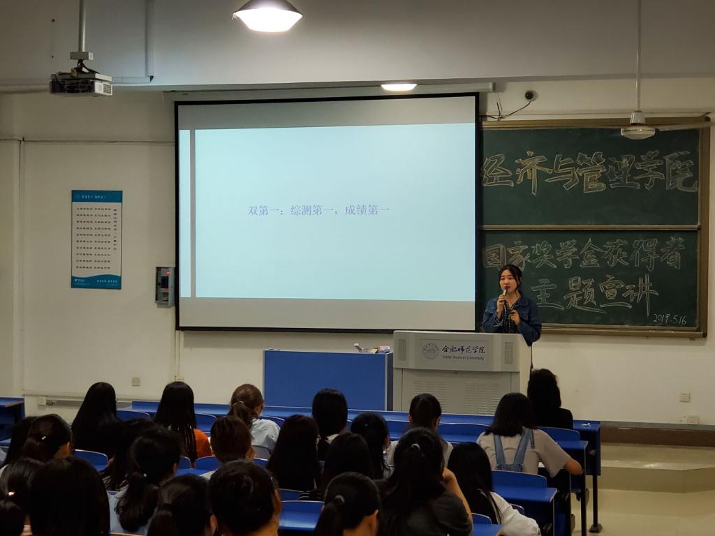 5月16日晚7点,国产清纯白嫩初高生害羞在逸夫楼A301教室举行“出彩合师”——国产清纯白嫩初高生害羞2018年“国家奖学金”获得者宣讲活动。来自2015级财务管理专业的卢敏同学、2016级经济学专业的胡悦同学为我院同学作报告。院党总支副书记陶敏及学院2018级部分专业同学参加了此次宣讲会。宣讲会由辅导员谷跃东老师主持。