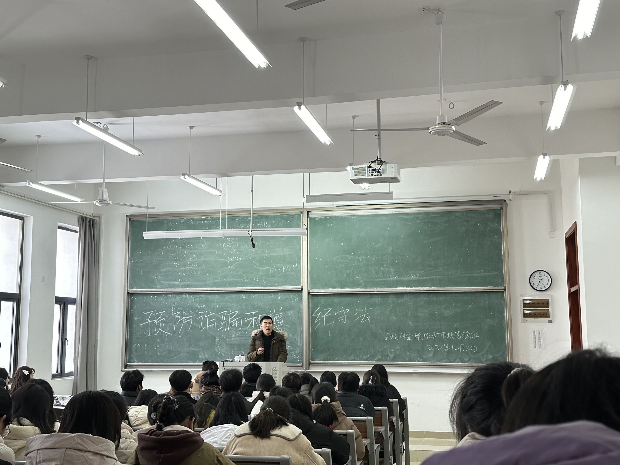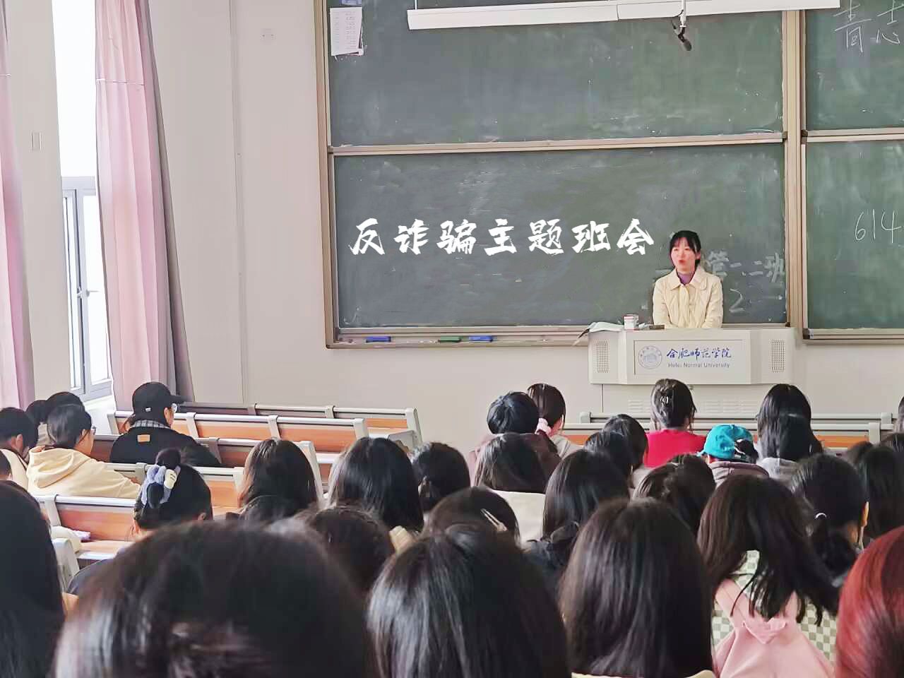 另外,杜姣老师、蒋诗伟老师、范颖老师和学生干部分别从筑牢防线、树立正确的消费观念,提高认识、维护人身财产安全,破除侥幸、预防电信被骗、诈骗等几个方面召开主题班会。