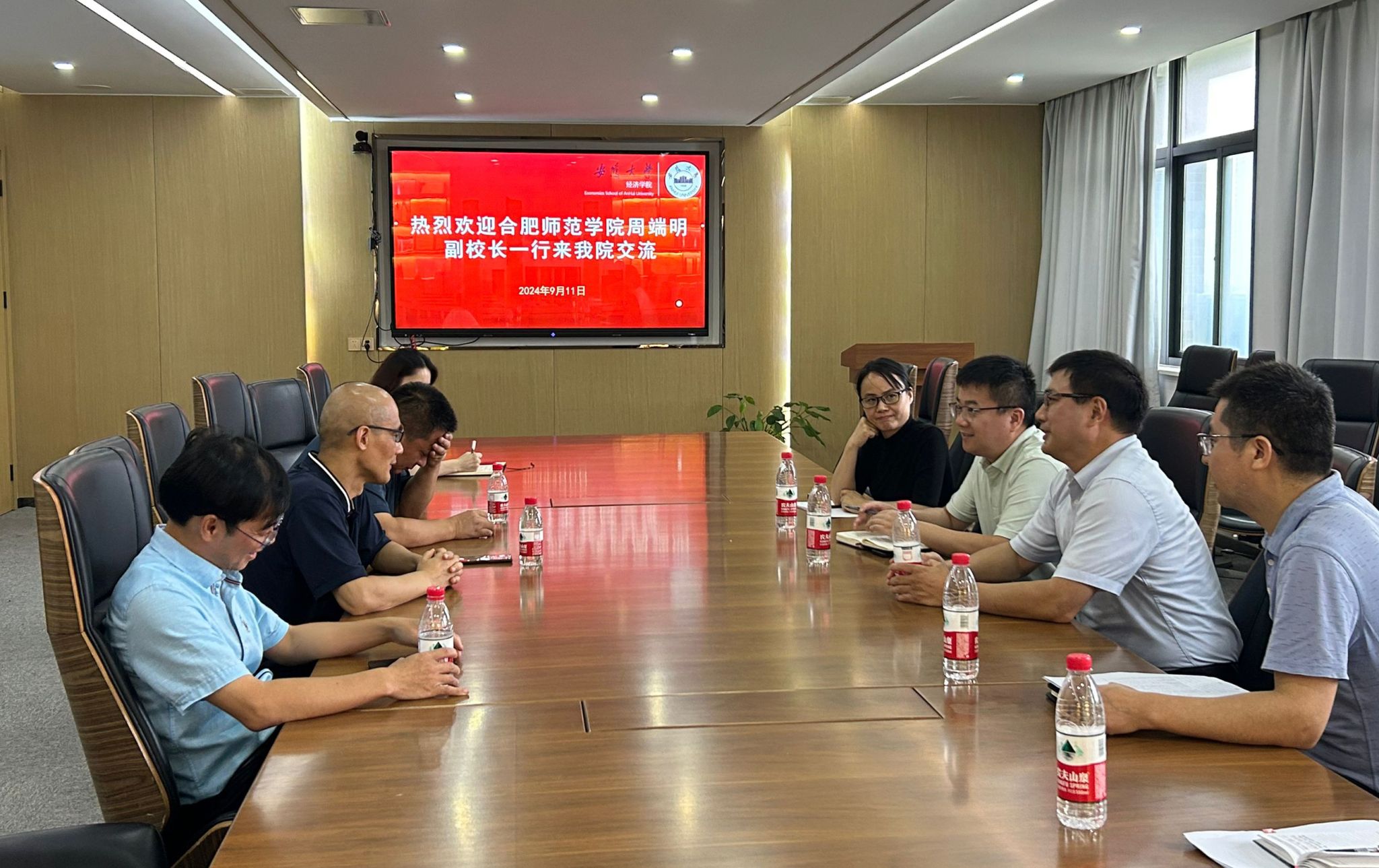 安徽大学经济学院执行院长徐亚平详细介绍经济学院在学科建设、师资队伍建设、科学研究、学生培养等方面的经验和做法。他提出,经济学院围绕学科交叉融合,坚持以市场需求为导向,在课程设计上注重将最新知识与前沿科技相结合,不断探索提升人才培养质量。他希望以此次交流为契机,继续深化双方的合作和交流。该院副院长华德亚、杨仁发分别从数字经济硕士研究生培养教育和日常管理等方面进行了探讨交流。