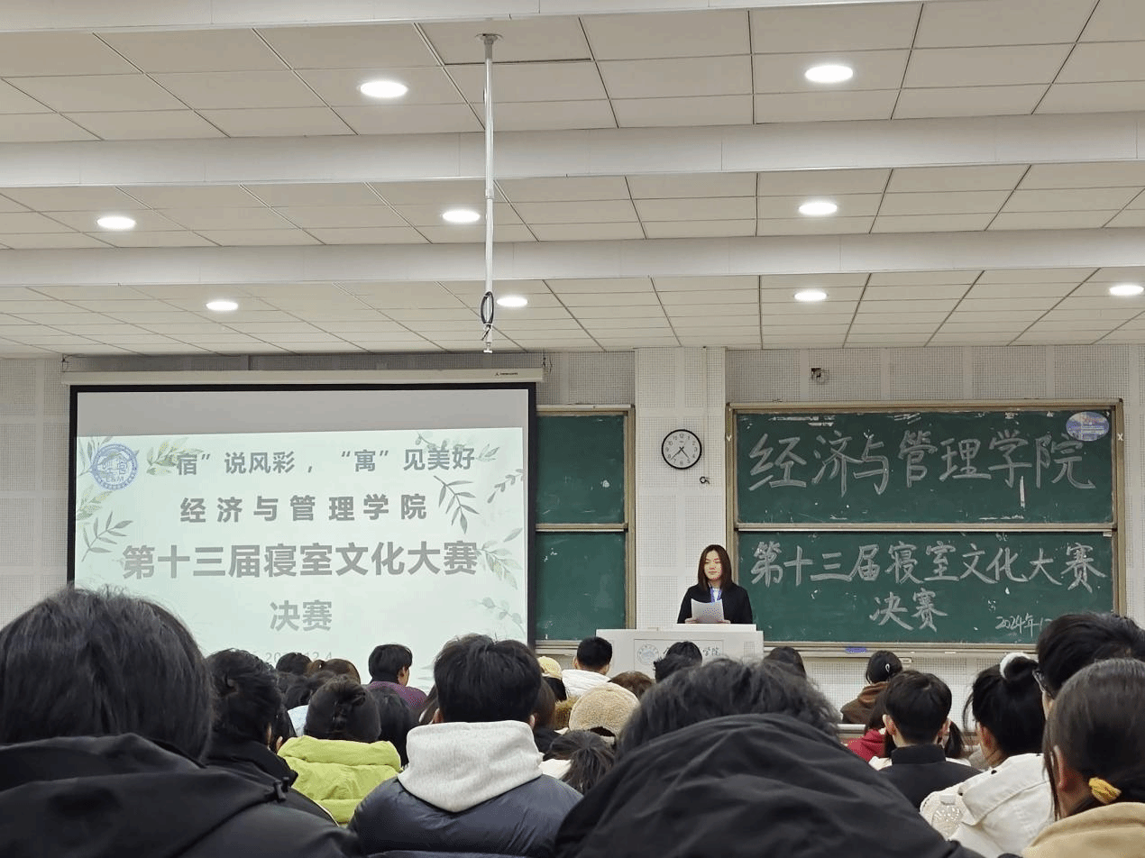 大赛举办以来,得到了经管院师生的积极响应与广泛参与。在初赛,各评委通过参观参赛选手宿舍实地考察打分,在激烈的角逐后共有八间宿舍脱颖而出进入决赛。决赛现场,各寝室派出代表通过PPT展示、才艺表演、个人介绍等方式,全方位呈现了充满创意的寝室文化内容,寝室温馨布置以及和谐积极向上的寝室氛围。有的寝室以“书香寝室”为主题,满室的书籍彰显良好的学习环境;有的则以“运动激情”为主题,讲解中洋溢着青春的气息。选手们或意气风发斗志昂扬,或自信心满满彰显魅力,为在场的观众和评委们带来了了一场独特的视觉盛宴。