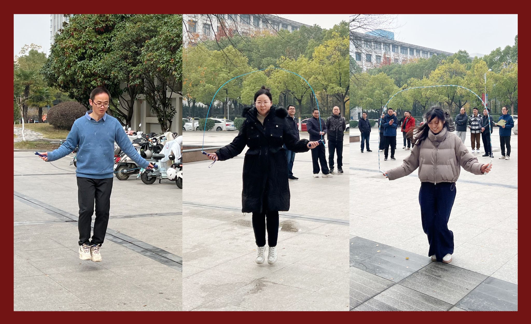 活动中,有的教职工跳绳技巧娴熟,速度飞快,让人目不暇接;有的则稳扎稳打,保持着均匀的节奏,展现出良好的耐力。比赛分为男子组和女子组,以一分钟内跳绳次数为活动的参与方式,大家相互鼓励、相互学习,既锻炼了身体,也释放了压力。