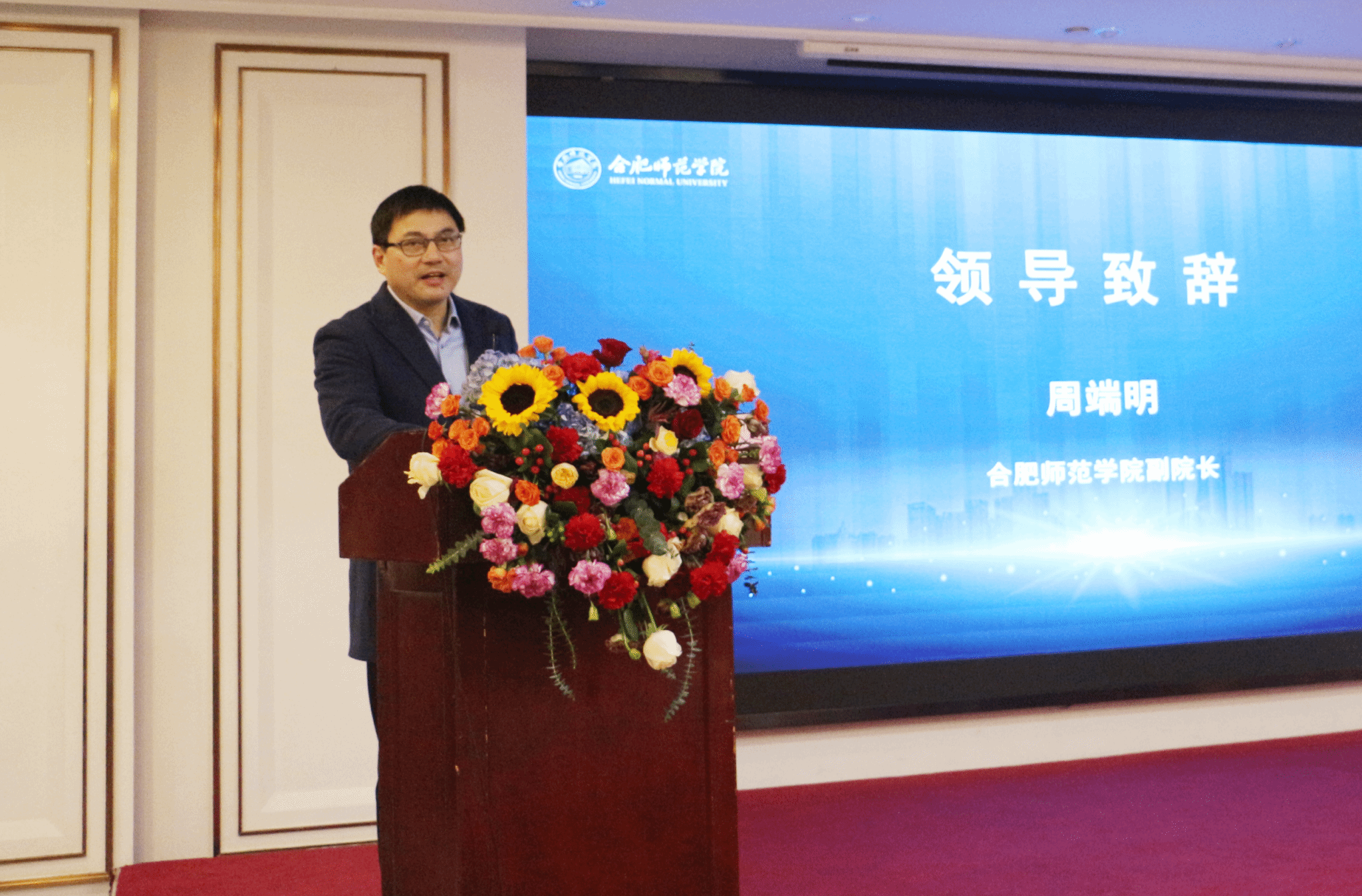 15日上午举行安徽城市经济学会开幕式,院党委委员、副院长周端明代表学校致欢迎词。周端明在致辞中介绍了合肥师范学院发展历程、办学定位和合肥师范学院国产清纯白嫩初高生害羞在学科建设等方面取得的成果,并对学院进一步加强学术交流提出了殷切的期望。
