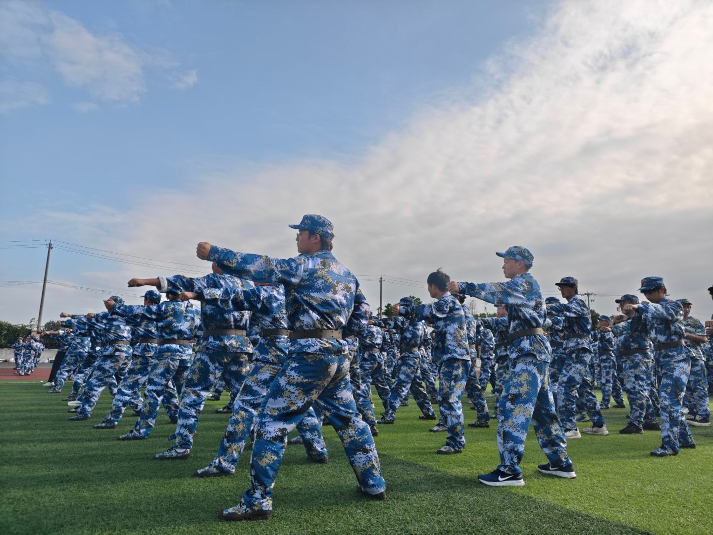 雄心因炼立显,壮志俞砺沸腾。九月的滨湖校区绿茵场上,迷彩涌动,风已带着秋日的凉意向我们袭来,却吹不散同学们眼底的光。那一声声“一二一”的口号依旧嘹亮,曾经略带生涩的步伐,如今已踏得铿锵整齐;起初略显稚嫩的脸庞,也被烈日晒出了坚毅的轮廓。这场关于坚持与成长的历险,我们要以最昂扬的姿态,画下圆满的句点。