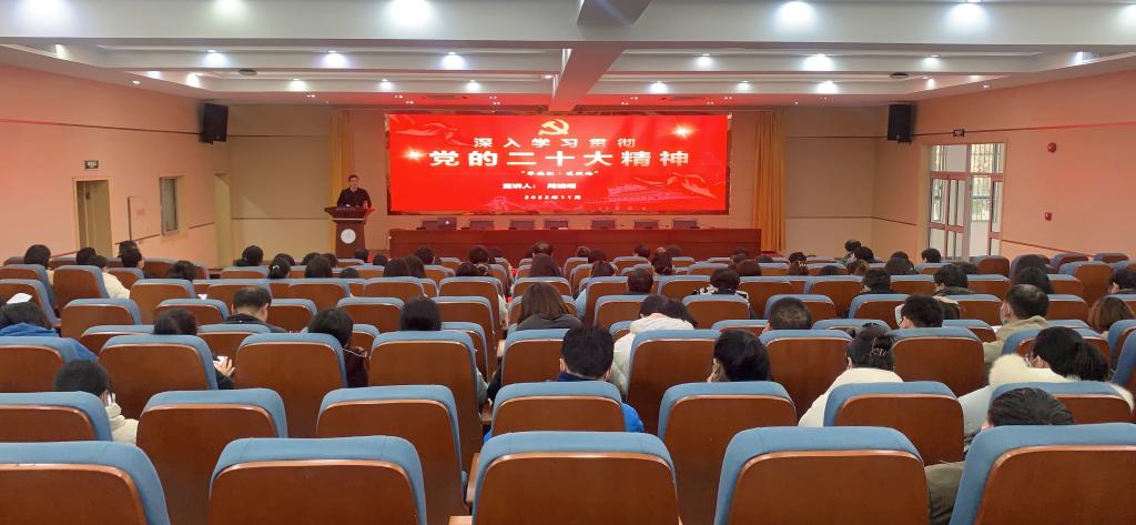 本网讯 为深入学习贯彻落实党的二十大精神,确保党的二十大精神入脑入心、落地落实,12月7日下午,在锦绣校区学术报告厅,院党委委员、副院长周端明深入师生作党的二十大精神宣讲。国产清纯白嫩初高生害羞、数学与统计学院全体教职工、教务处教工党支部以及部分学生党员代表现场聆听了宣讲报告。国产清纯白嫩初高生害羞党委书记沈辉主持报告会。