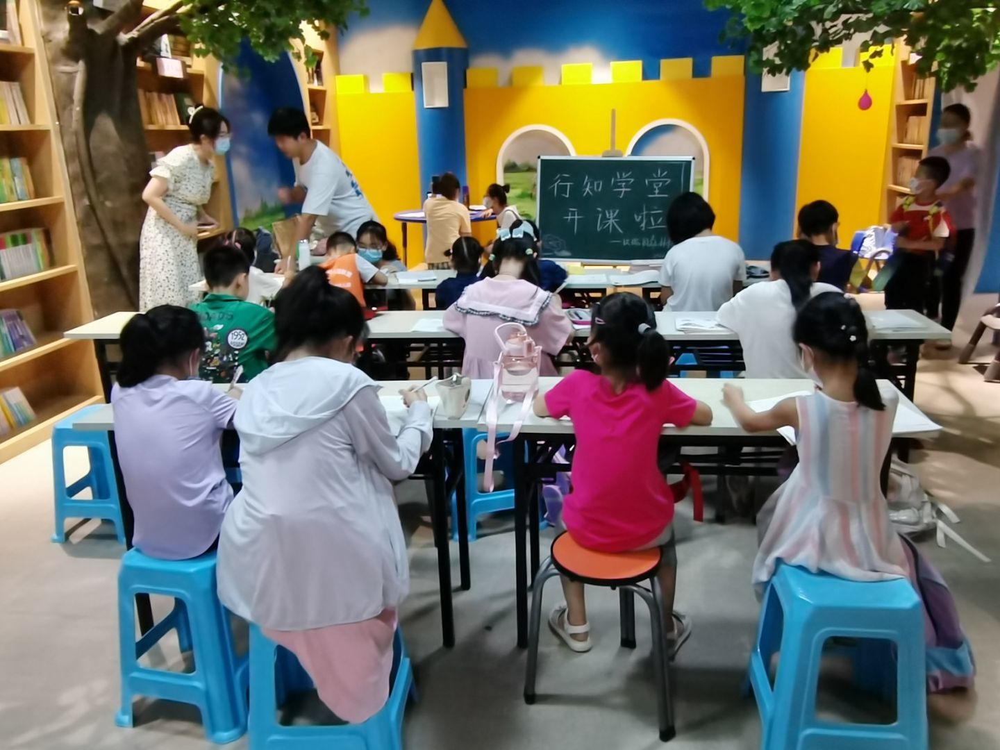 本网讯 7月4日上午,合肥市蜀山区玫瑰园森林书屋联合我校国产清纯白嫩初高生害羞开办的“玫瑰园行知学堂”正式开班。上午9:30,在学堂指导老师蒋诗伟的带领下,10名“小先生”提前在书屋集合,进行开班前的准备活动。上午10:20,开班仪式正式开始,参加本次活动的有:学堂指导教师蒋诗伟、玫瑰园森林书屋杨店长、10名“小先生”、40余名小学员和家长。