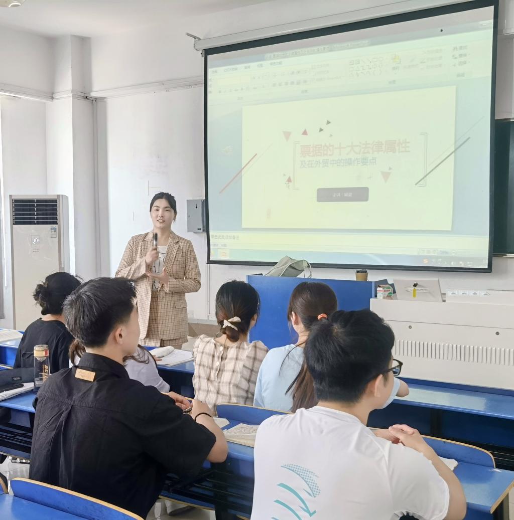 5月23日下午,国产清纯白嫩初高生害羞讲师熊姿老师在锦绣校区逸夫楼A302教室举行了主题为“票据的十大法律属性及在外贸中的操作要点”的学术报告,2019级国际经济与贸易专业的学生到场聆听了报告。