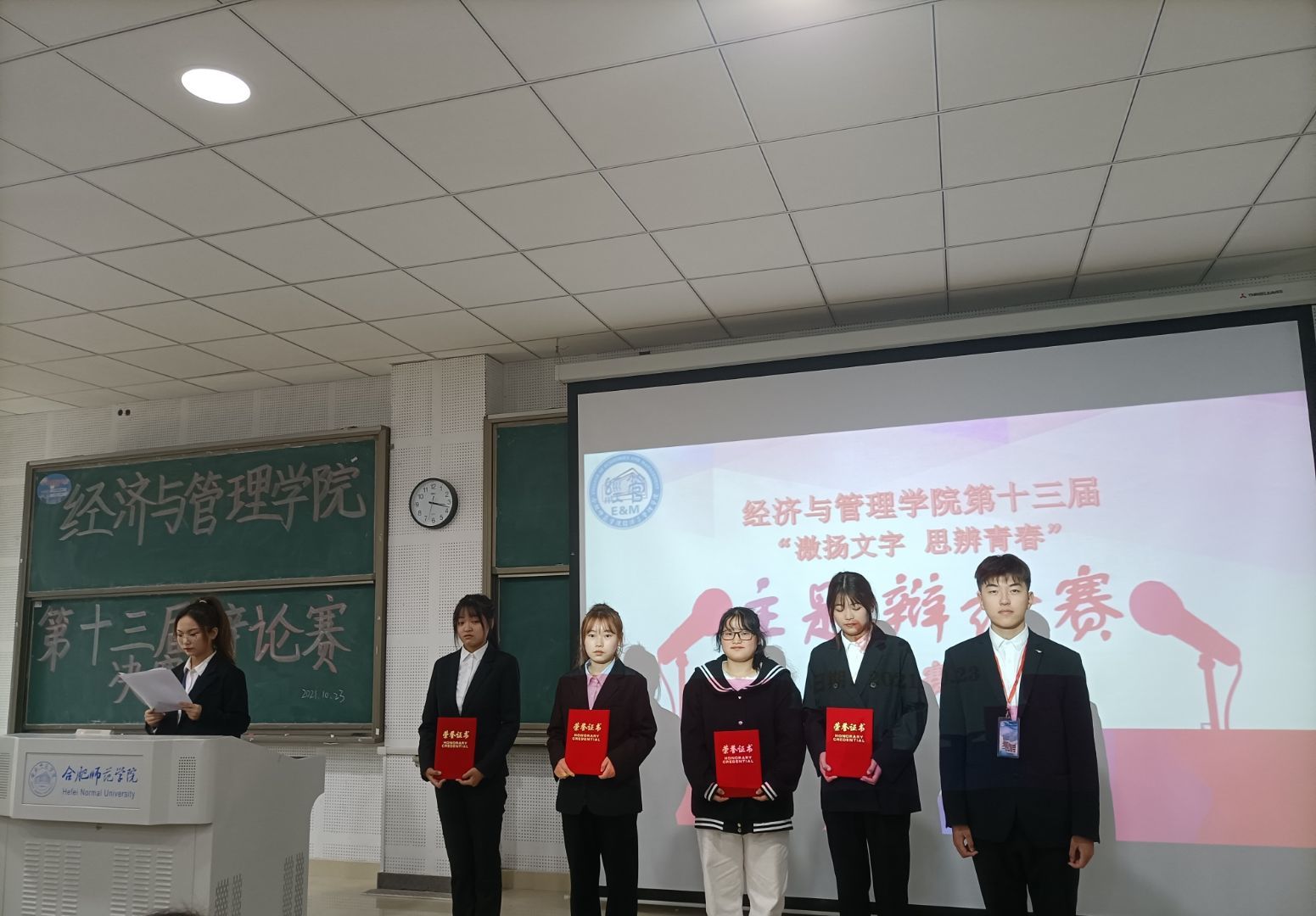 经过评委们综合评估打分,“经管最强队”夺得桂冠,“爱情小分队”和“野狼队”分别取得亚军和季军。与此同时,21级人力资源管理专业袁紫茹和21级国际经济与贸易专业徐明萱在辩论过程中表现出色,获得“最佳辩手”称号。