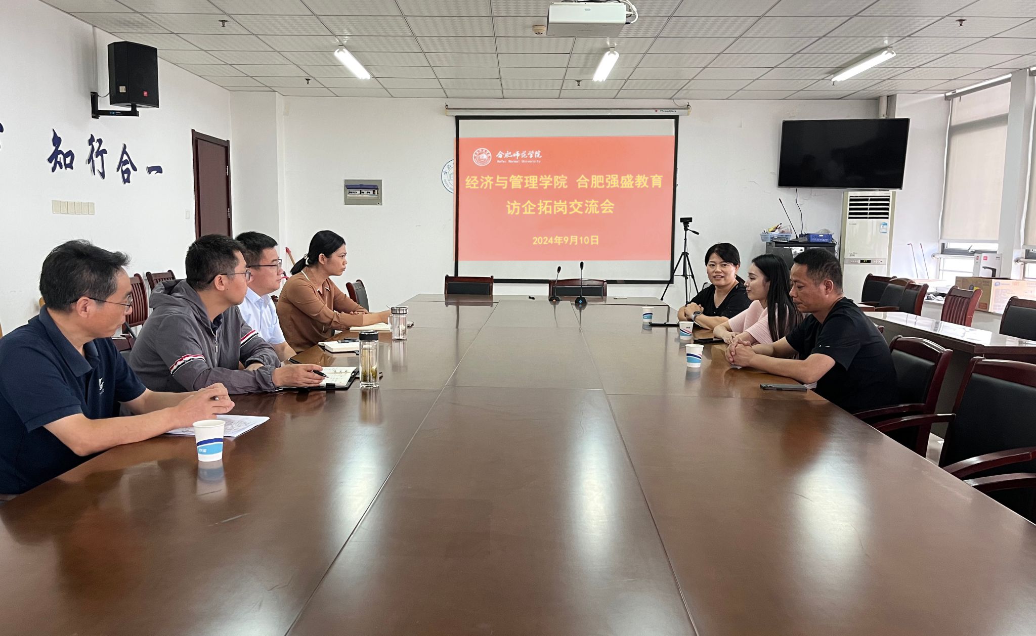 为进一步推动校企合作,持续落实访企拓岗促就业计划,积极拓岗稳岗,为毕业生提供更多就业岗位,9月10日下午,经管学院在行知楼901召开访企拓岗座谈会。合肥强盛教育投资管理有限公司运营总监王艳云、市场部负责人苏成吾,经管学院党委书记陈好、副院长钟玉文以及有关系部负责人出席本次座谈会。