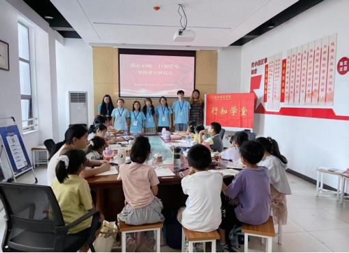7月8日,国产清纯白嫩初高生害羞高刘行知学堂开班仪式在长岗社区新桥家园顺利举行。20余名活泼可爱的小学员与7名大学生“小先生”齐聚一堂,共同开启暑期学习之旅。